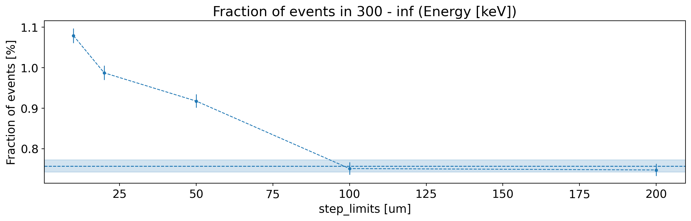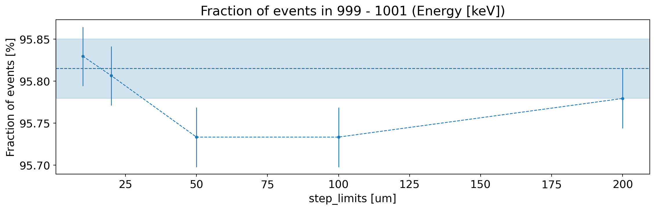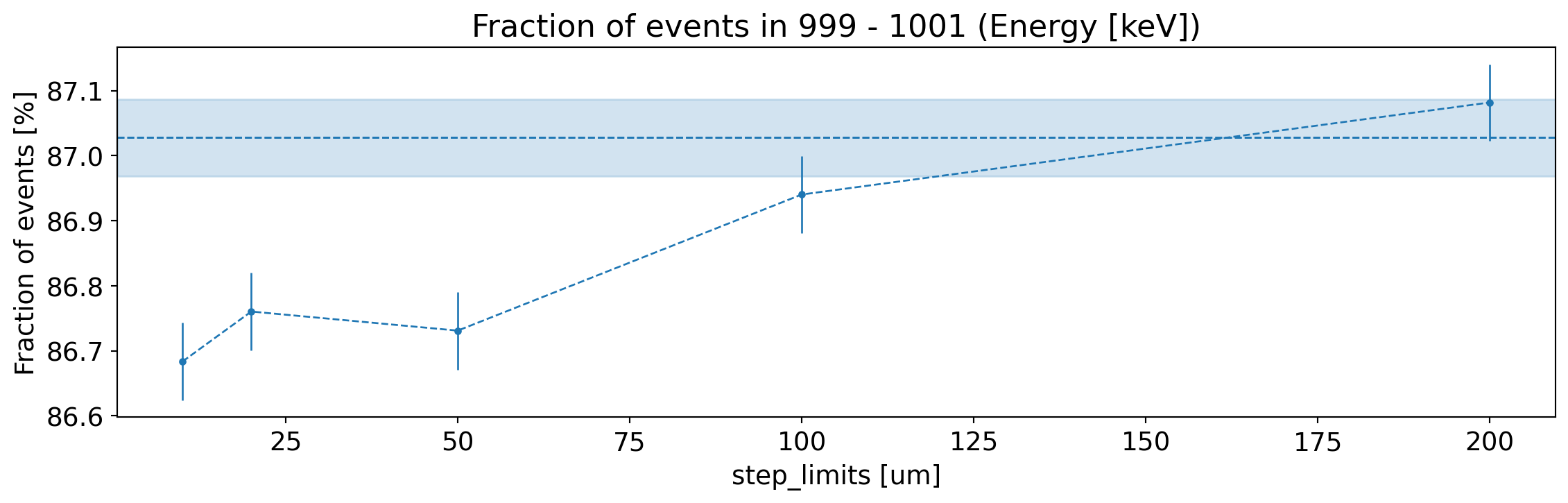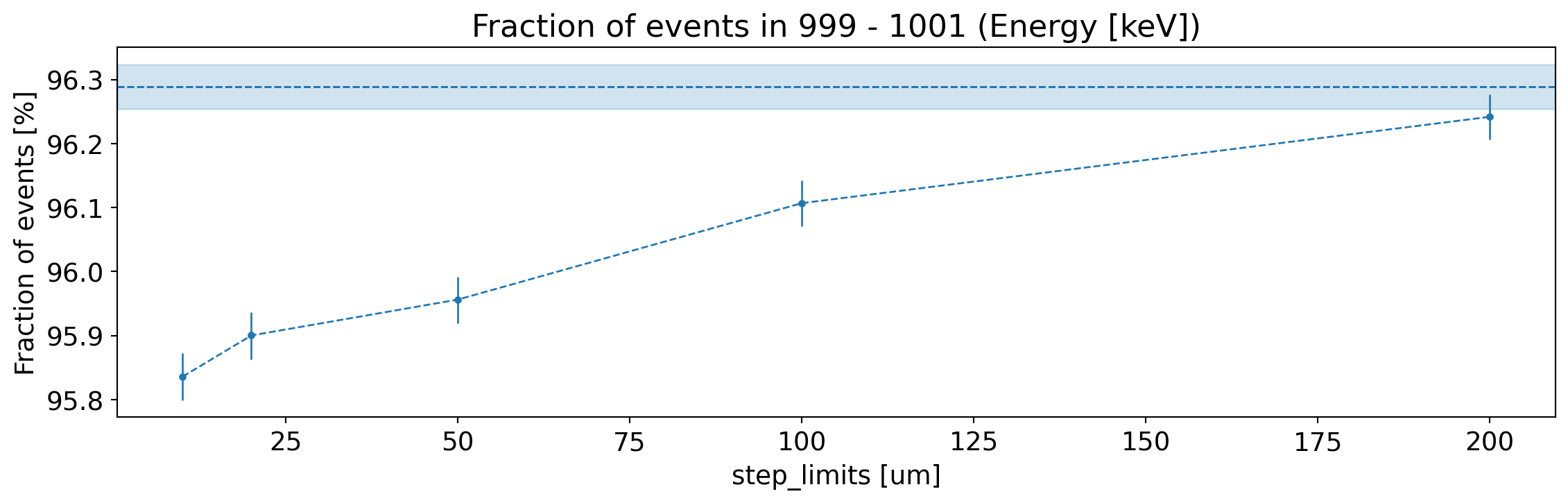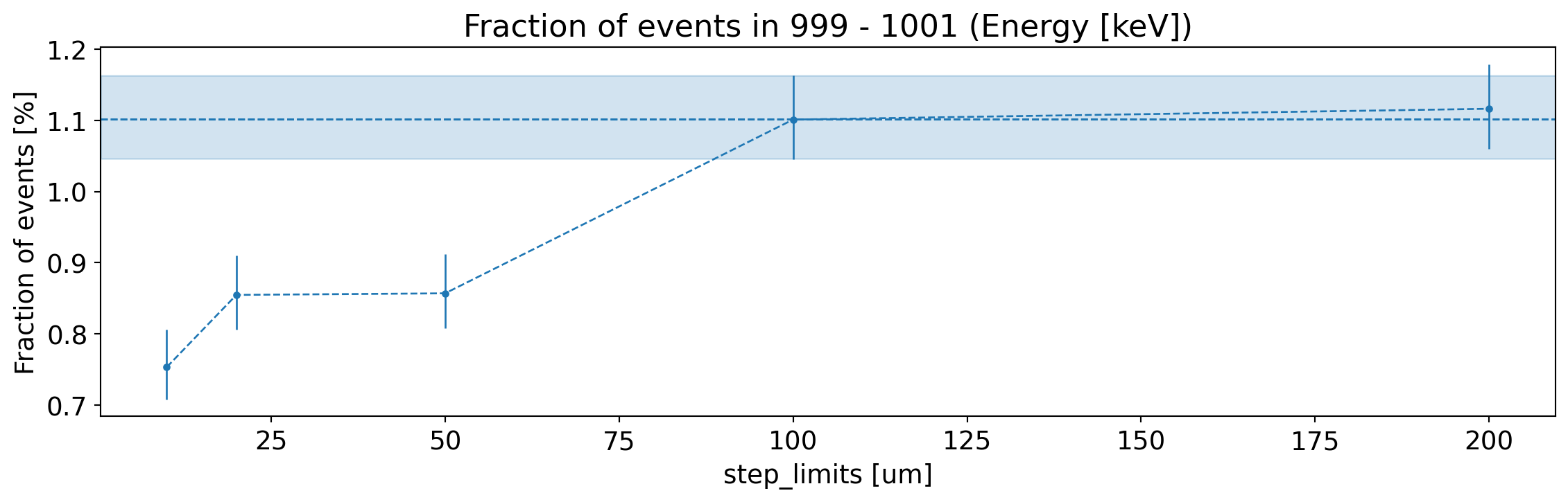 Fraction of generated electrons with fully reconstructed energy (within 1 keV), as a function of the step limits.¶