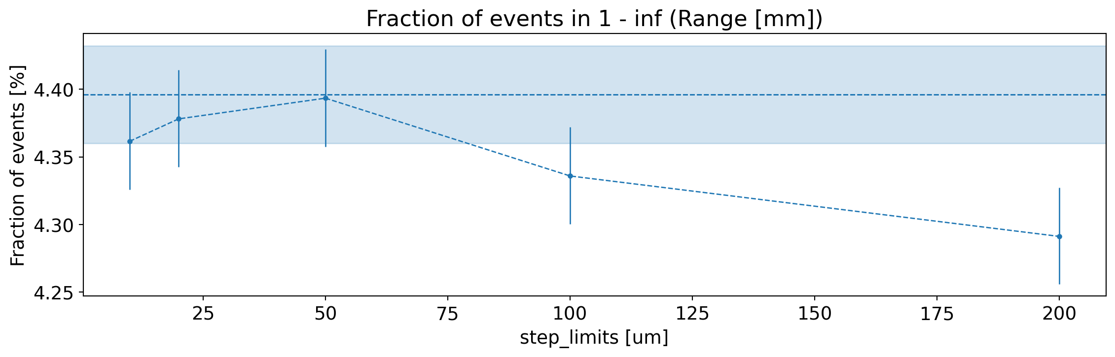 Fraction of generated electrons with fully reconstructed total energy (within 1 keV), as a function of the step limits.¶