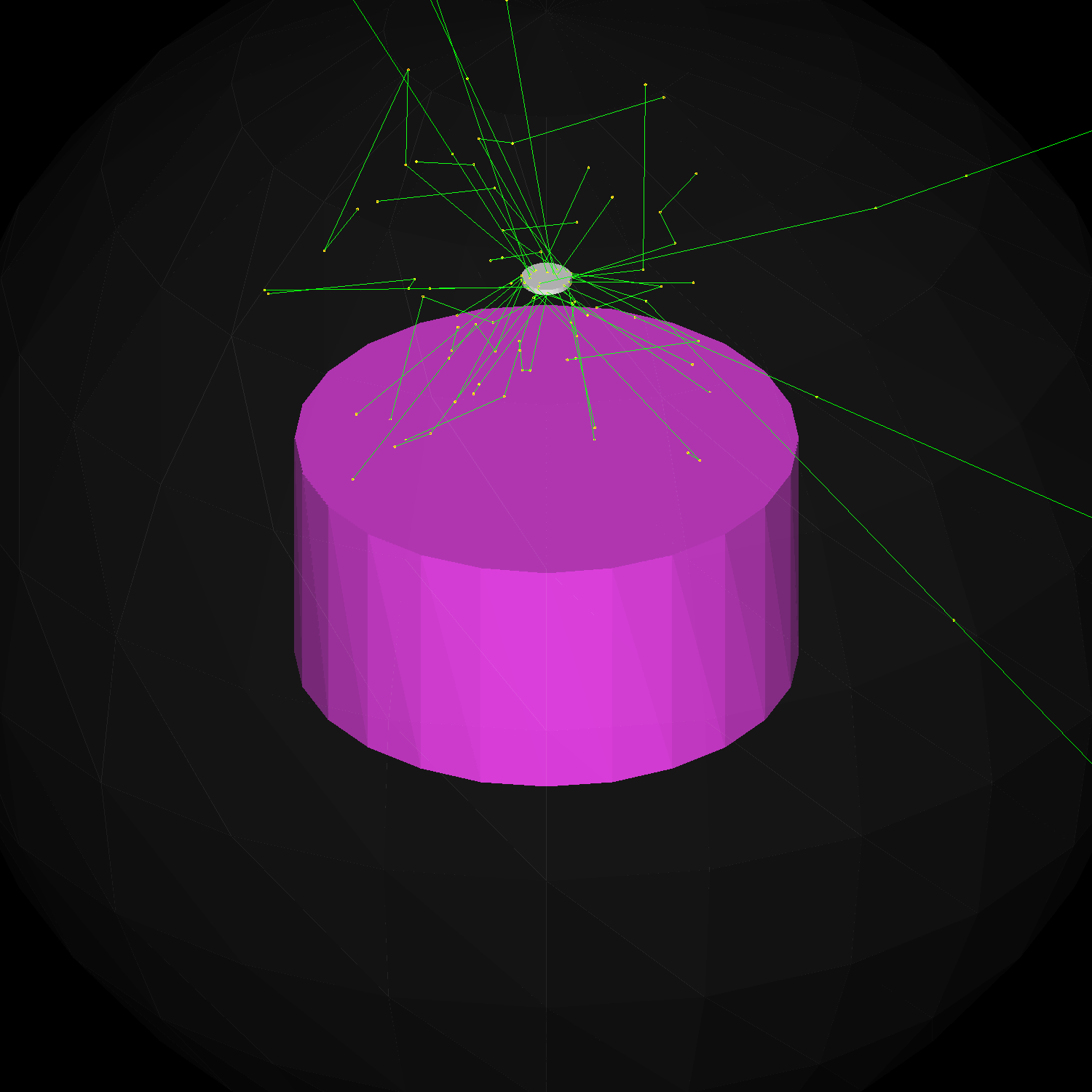Geometry for the tests on Ge observables, gamma primaries are generated in the source (shown in white).¶